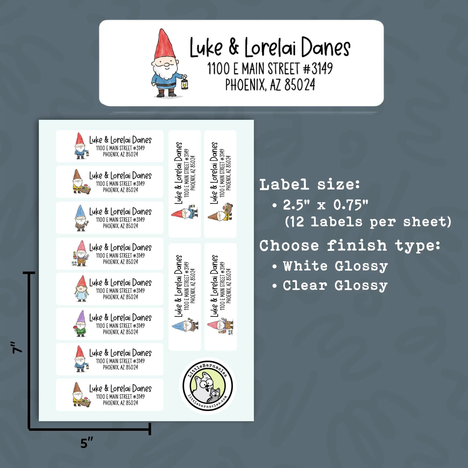 Custom Gnome Address Labels • Personalized Return Address Stickers • Cute Garden Gnome Mailing Labels • Customizable Address Label Set of 12