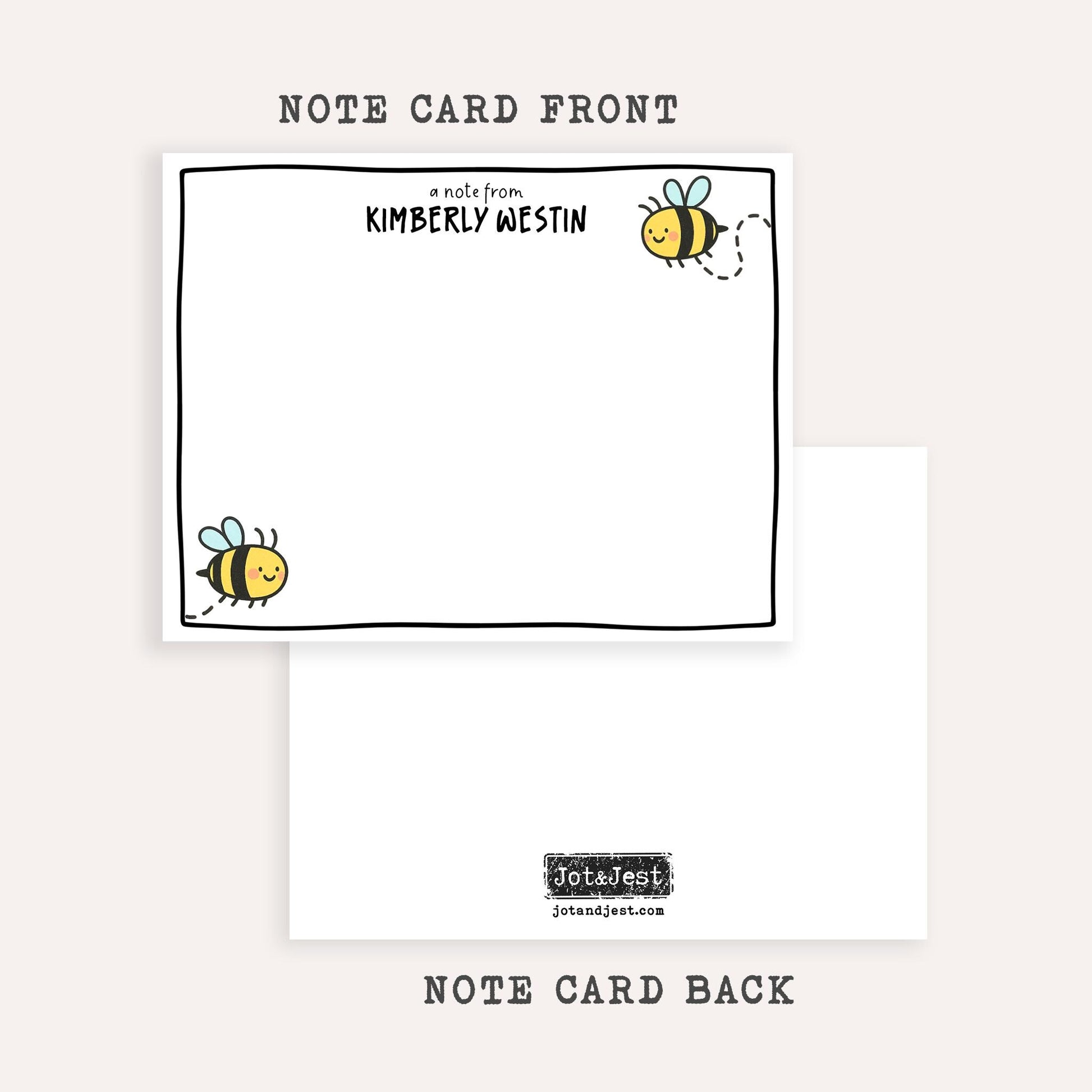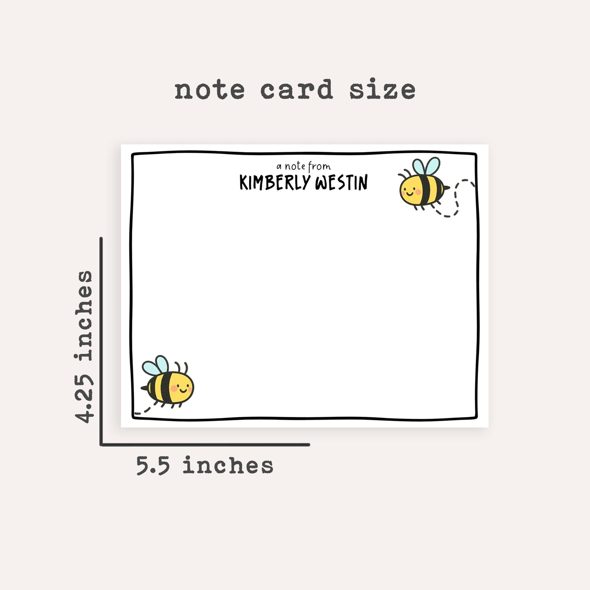 Personalized Bee Stationery Set • Custom Name Flat Notecards • Cute Bee Thank You Cards • Monogram Stationery • Set of 12