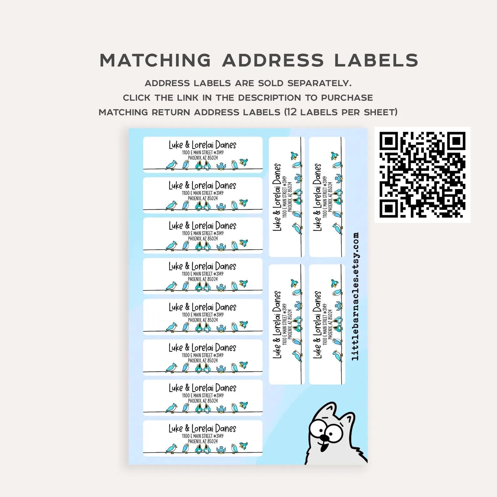 Personalized Bird Stationery Set • Custom Name Flat Notecards • Cute Bird Thank You Cards • Monogram Stationery • Set of 12