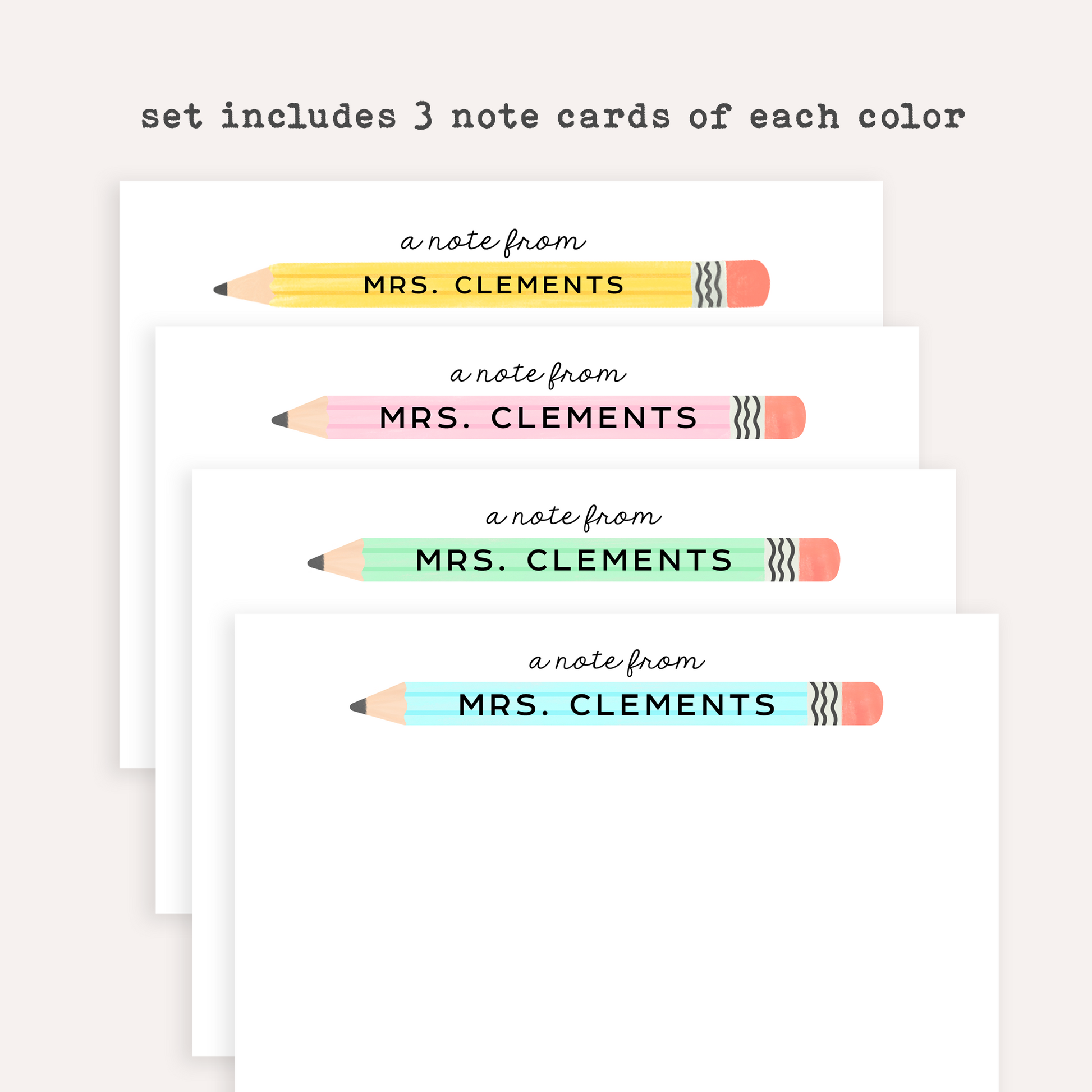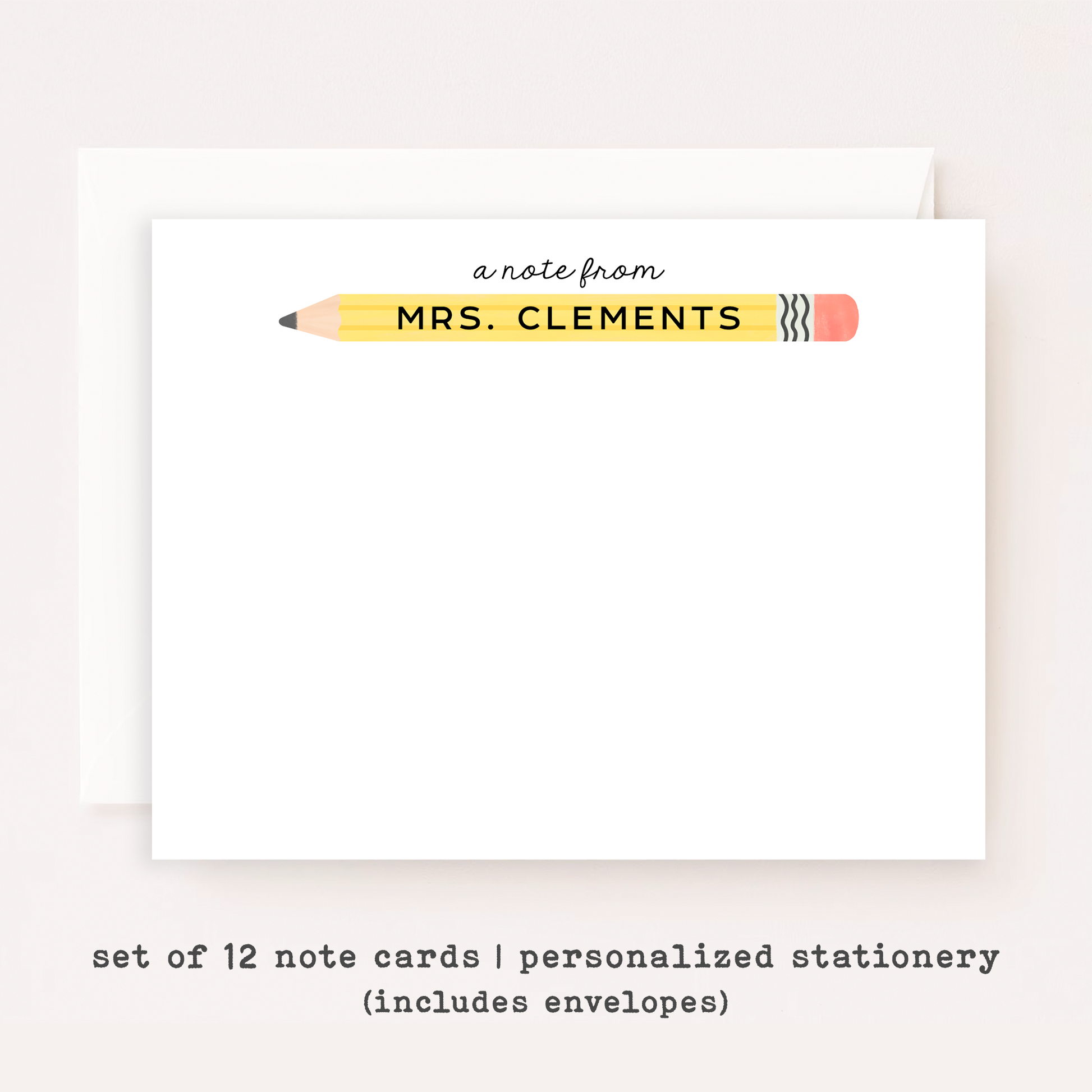 Personalized Teacher Stationery Set • Custom Name Flat Note Cards • Teacher Gift • Customized Notecards • Set of 12